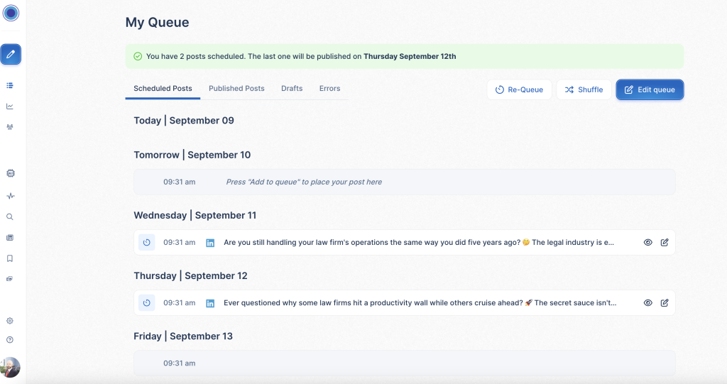 Taplio makes LinkedIn marketing easy, especially for lawyers that don’t have the time or resources to dedicate to a full-fledged social media strategy. Its AI-powered content creation, scheduling, and engagement tools take the heavy lifting out of the process, while pricing remains accessible for firms of all sizes. For lawyers who want to grow their digital presence and build professional connections without burning out, Taplio is worth the investment.